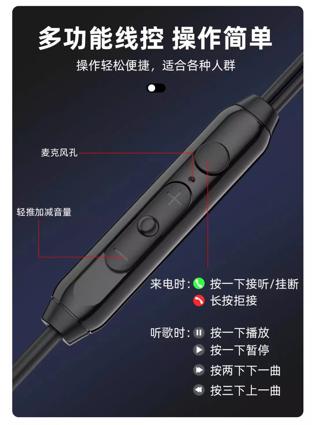 普通耳塞式耳机 手机线控耳机 平头耳机
