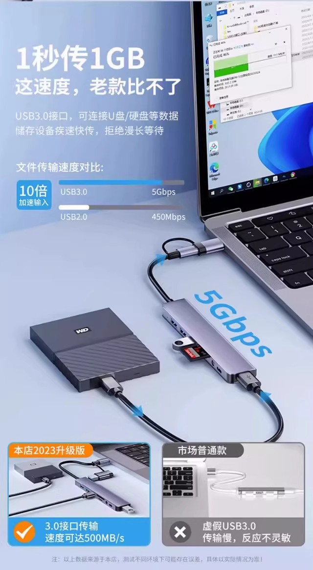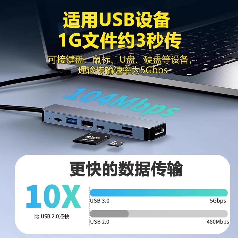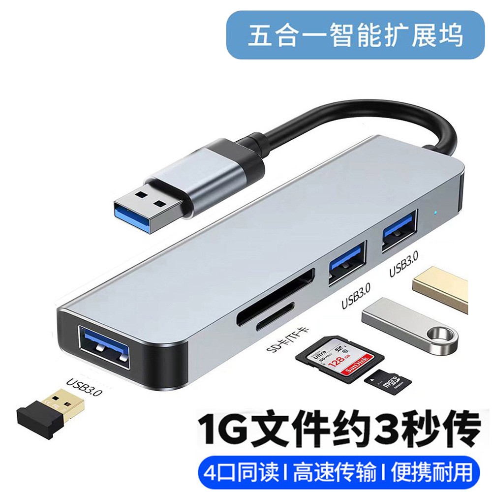 Type-CUSB拓展坞五合一笔记本电脑高清USB3.0网卡USB扩展器笔记本多功能桌面扩展坞多接口网线HDMI