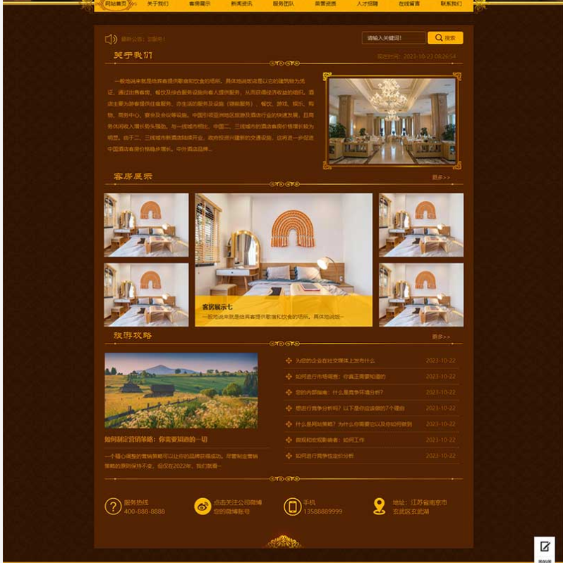 (自适应手机端)酒店民宿网站pbootcms模板 客房旅馆网站