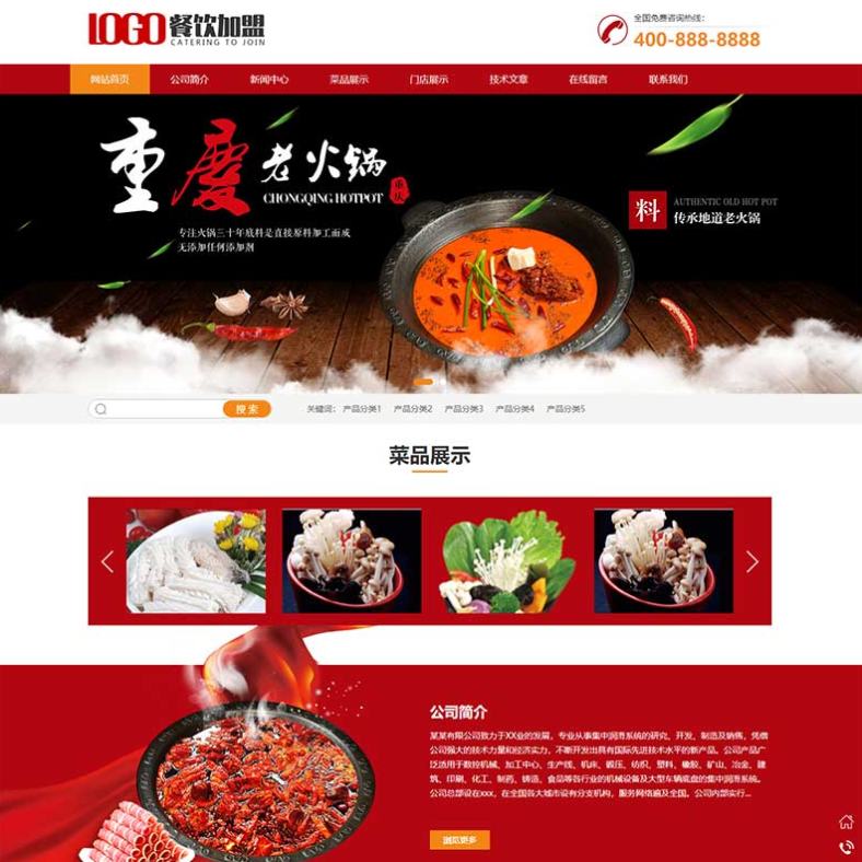 该模板适用于火锅加盟网站、餐饮美食网站等企业,当然其他行业也可以做,