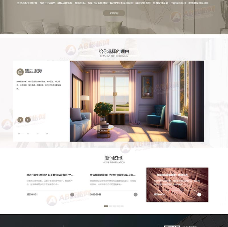 (自适应移动端)棕色家具装修pbootcms网站模板 响应式家具建材类网站