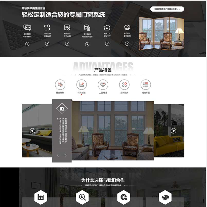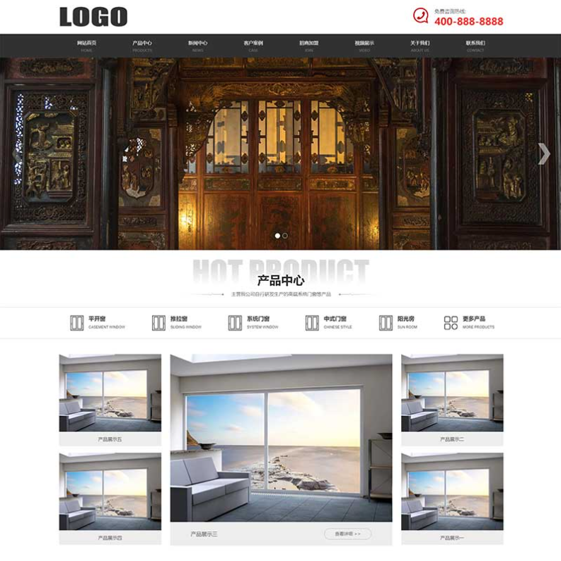 (自适应手机端)门窗系统网站模板 阳光房铝合金门窗网站