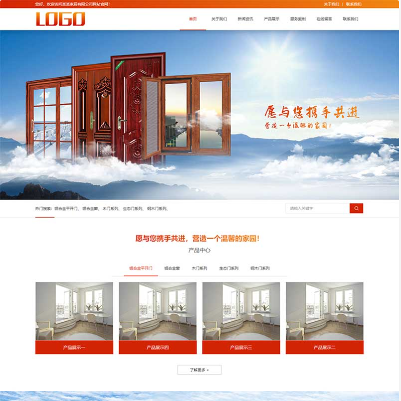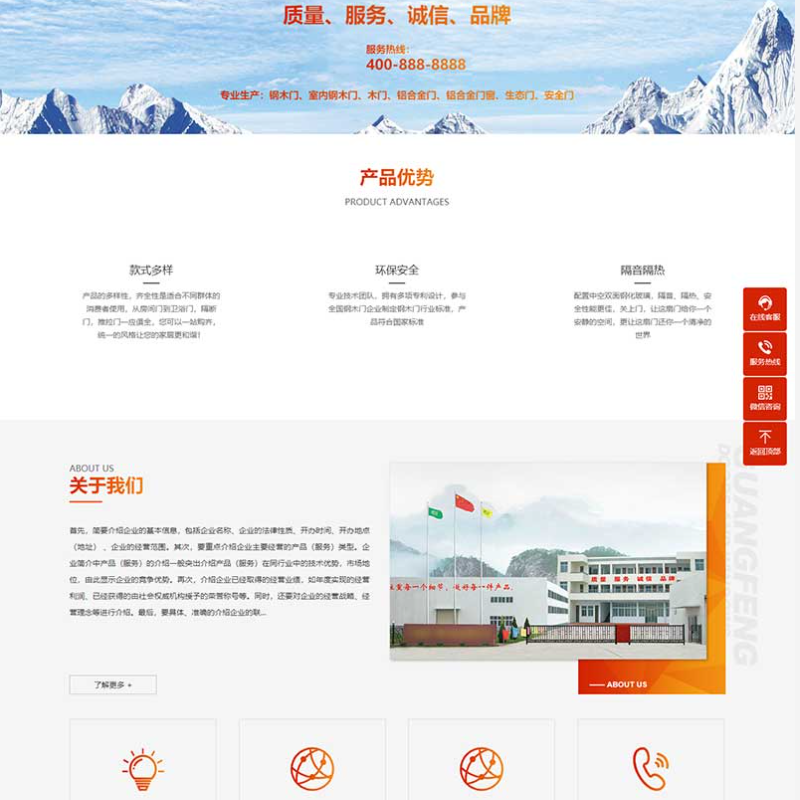 (自适应移动端)响应式门窗定制pbootcms模板 门窗门业网站