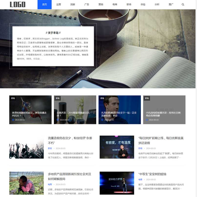 该模板适用于新闻博客网站、自媒体网站等企业,
