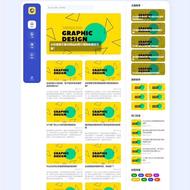 (自适应移动端)大气的个人博客作品pbootcms网站模板 博客主题作品展示网站