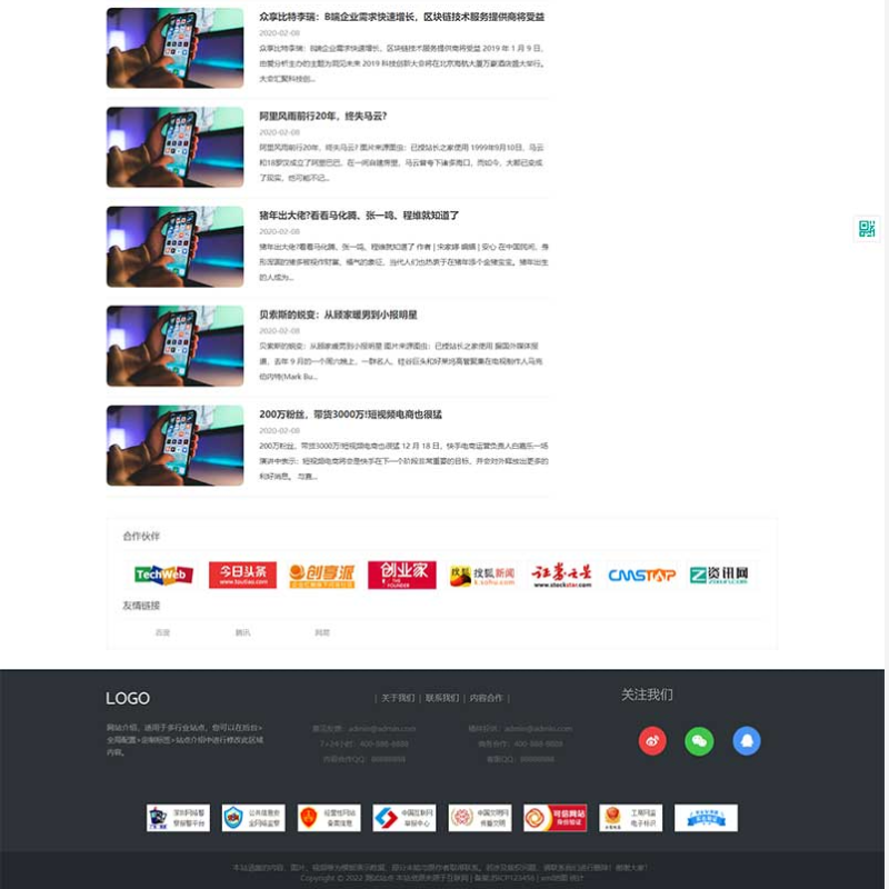 该模板适用于新闻博客网站、新闻资讯网站等企业,