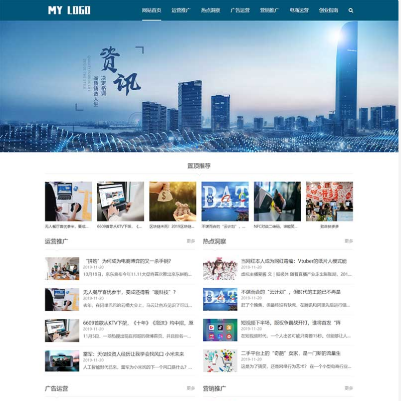 该模板适用于新媒体资讯网站、IT运营博客网站等企业,