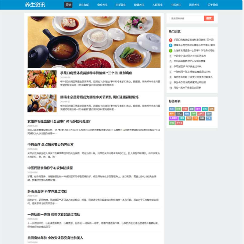 该模板适用于新闻博客网站、养生资讯网站等企业,