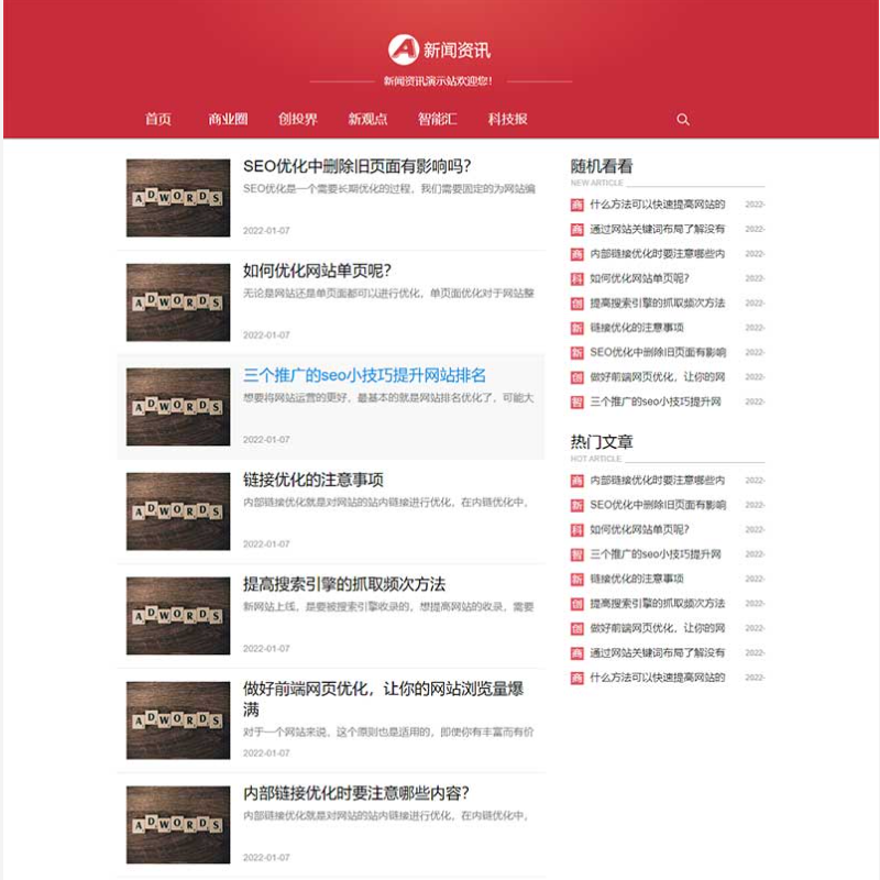 (自适应手机端)新闻资讯博客网站pbootcms模板 html5响应式新闻博客网站