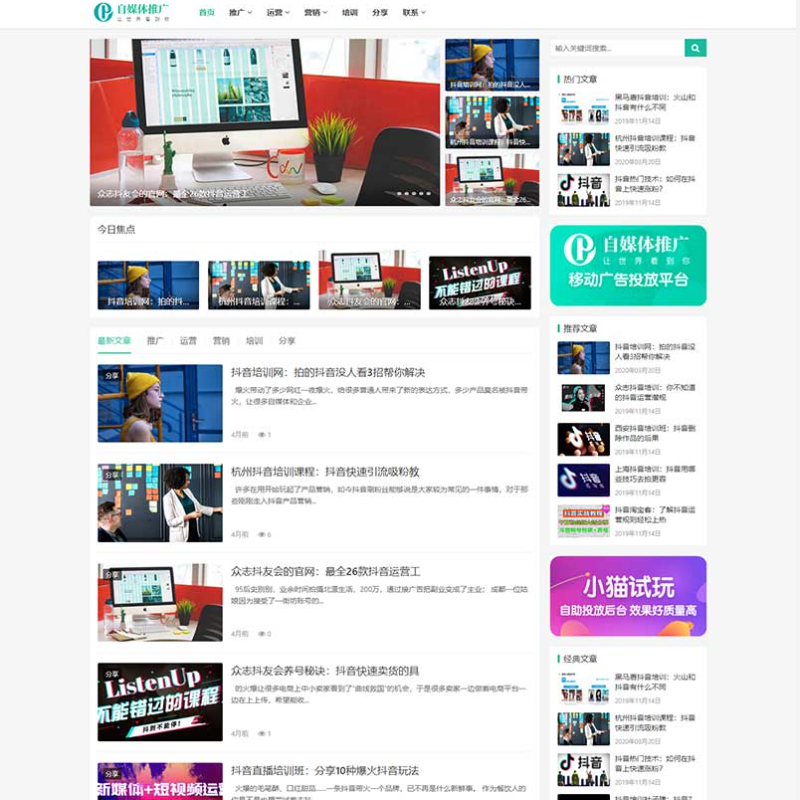 (自适应手机端)PBOOTCMS自媒体运营培训教程类网站模板 html5个人博客网站