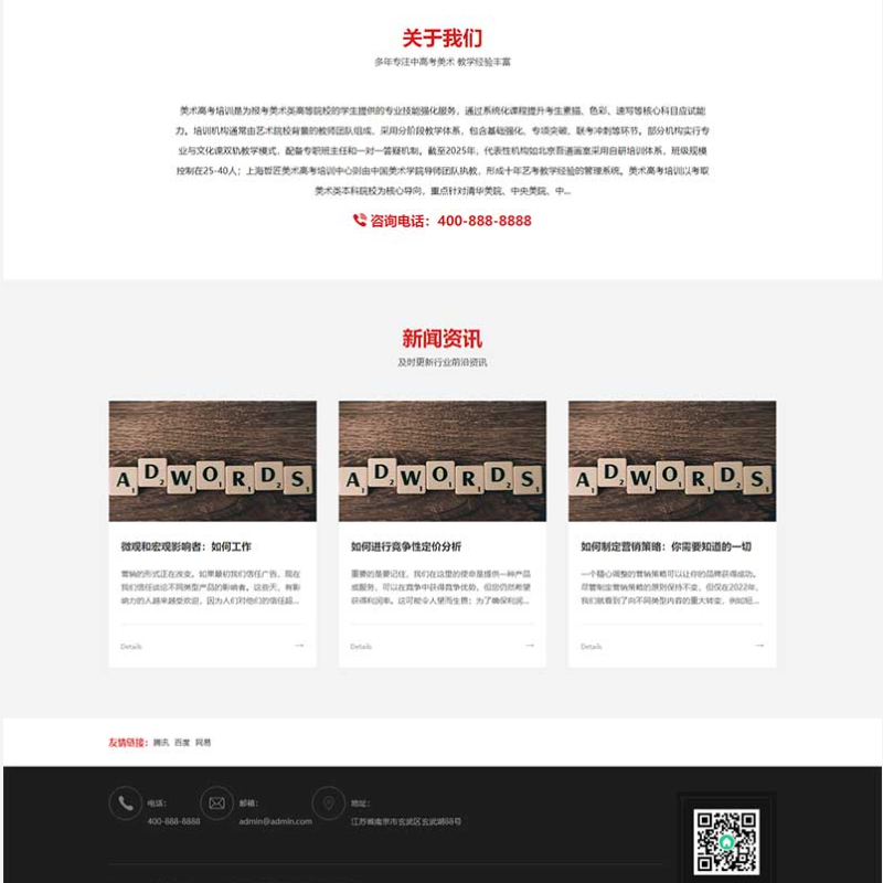 该模板适用于美术培训网站、画室画廊网站等企业,