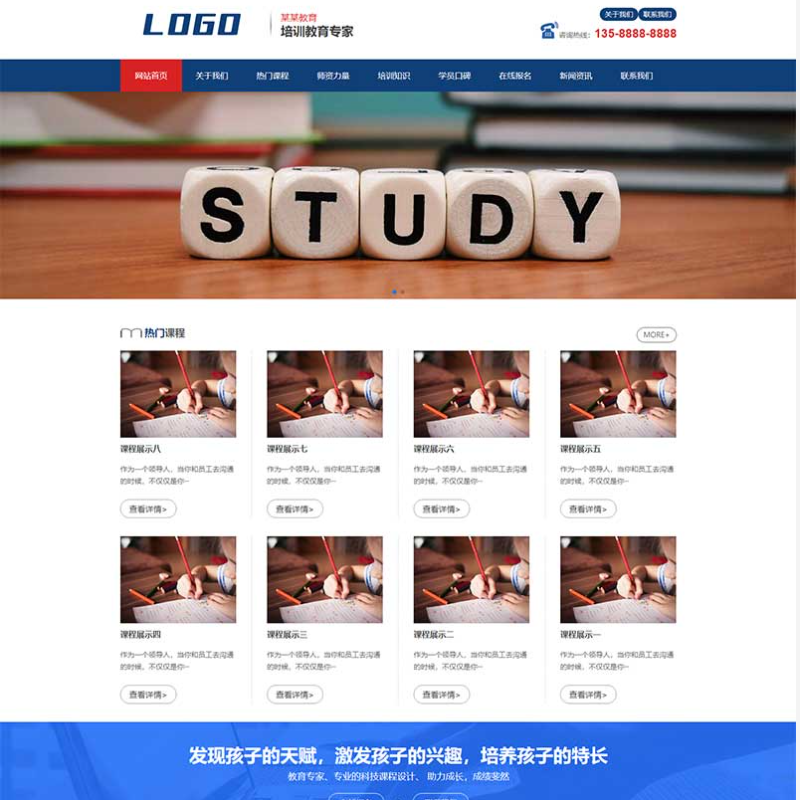 该模板适用于教育培训网站、教育咨询网站等企业,