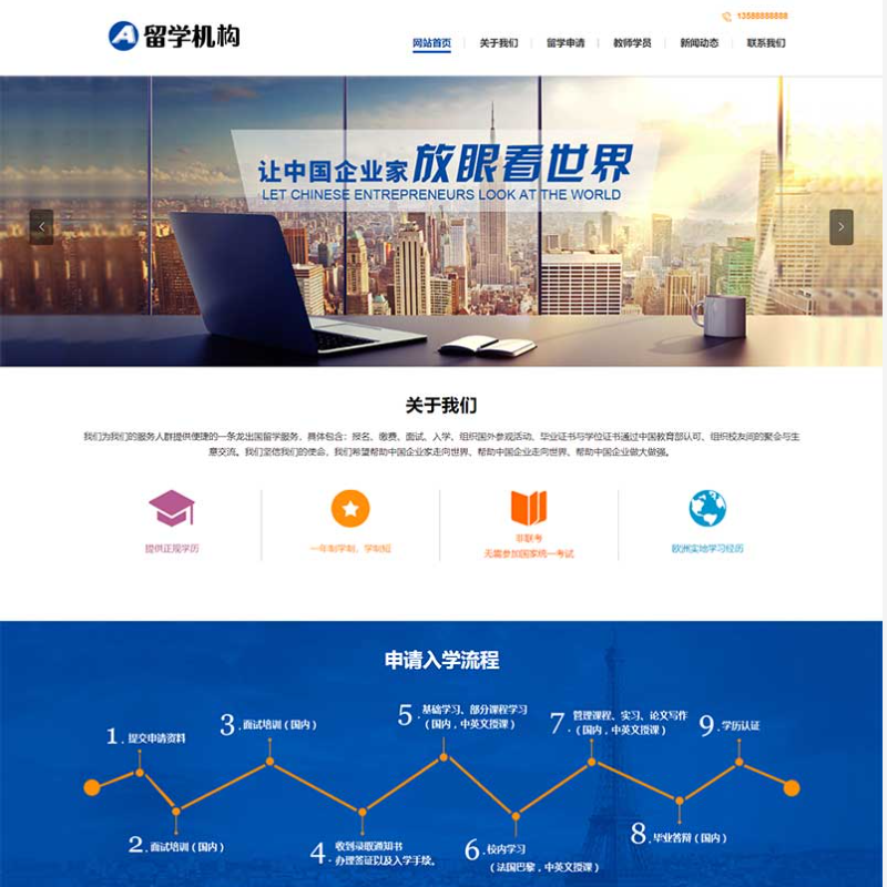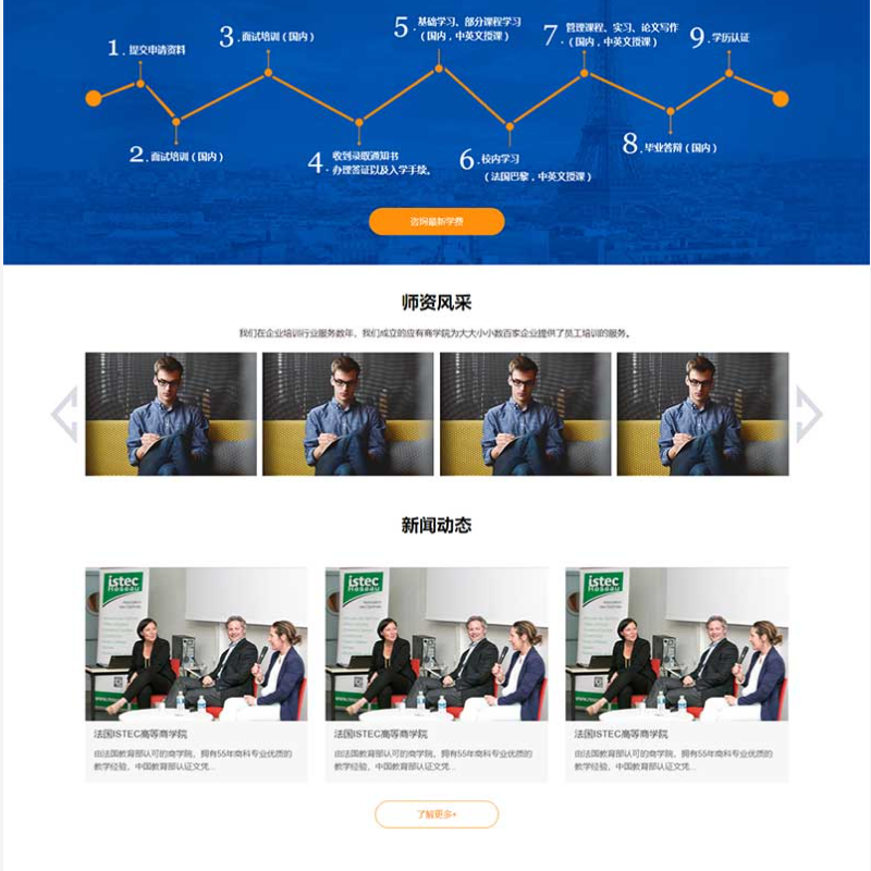 该模板适用于教育咨询网站、出国留学网站等企业,