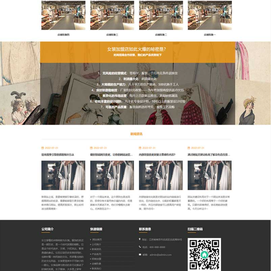 该模板适用于女装服装网站、服装加盟网站等企业,