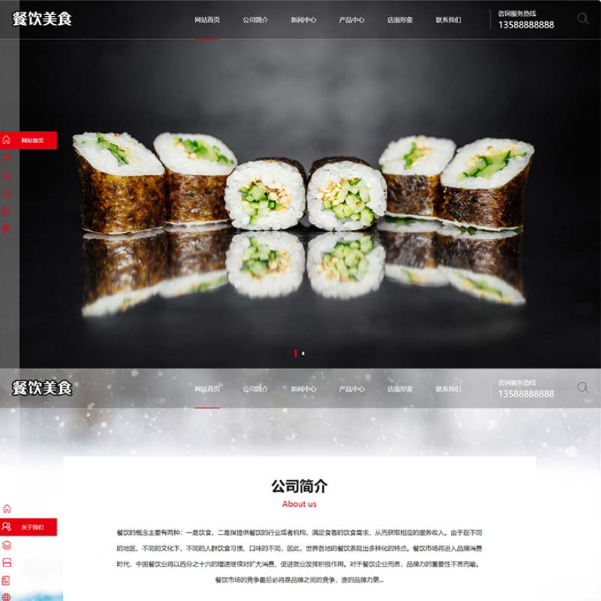 该模板适用于餐饮美食网站、餐饮加盟网站等企业,当然其他行业也可以做,只需要把文字图片换成其他行业的即可;