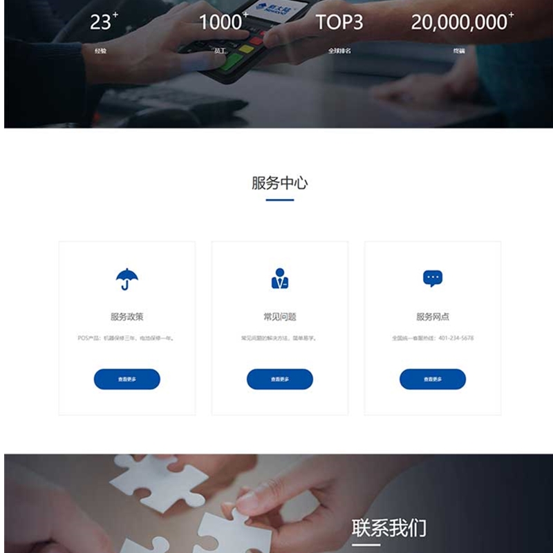 该模板适用于POS机网站、无线支付设备网站等企业,当然其他行业也可以做,只需要把文字图片换成其他行业的即可;
