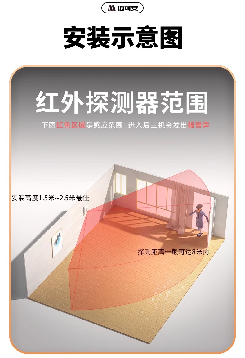 高档红线警报外器无店铺门窗家用防盗警报系器远距离线农村车库安