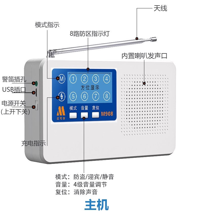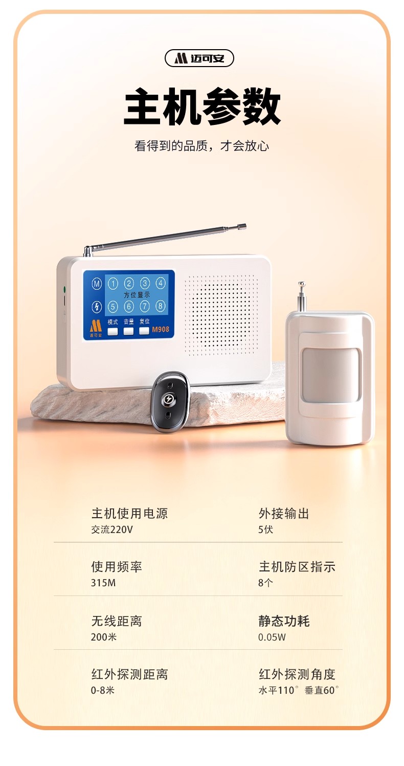 升级款多功能防盗报警器,新款主机升级为独立8防区显示,老款只有4防区。