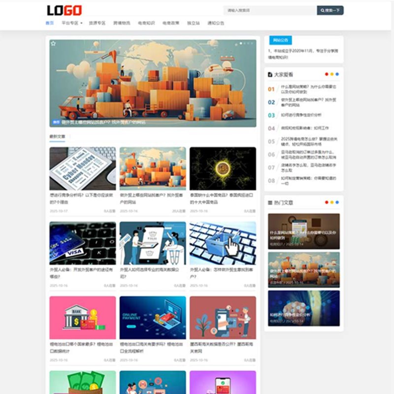 该模板适用于博客新闻网站、跨境电商博客网站等企业,当然其他行业也可以做,只需要把文字图片换成其他行业的即可;